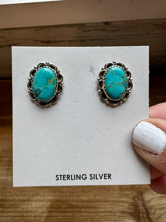 Oval Stud round Kingman turquoise earrings